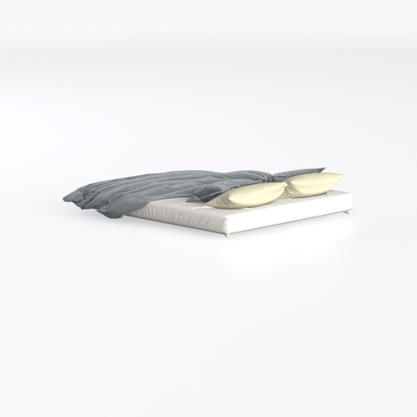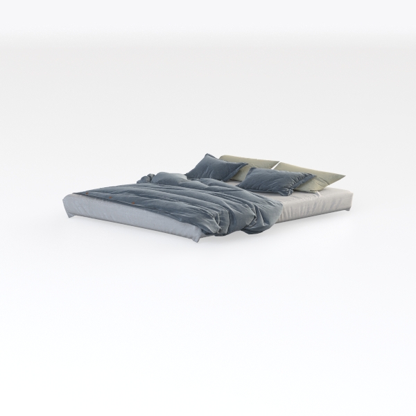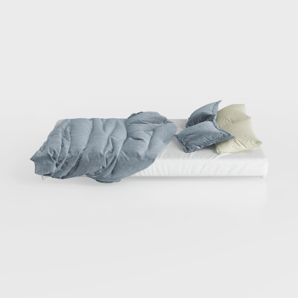 Inspired by minimalist serenity, the design blends soft contours and clean lines. The textured blue comforter, with its plush, cloud-like surface, contrasts gently against the smooth white mattress, while muted green pillows add subtle warmth. Ideal for a modern Scandinavian bedroom, it pairs with light wood furniture and linen curtains, offering a generous width and breathable fabric for all-night comfort.