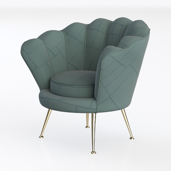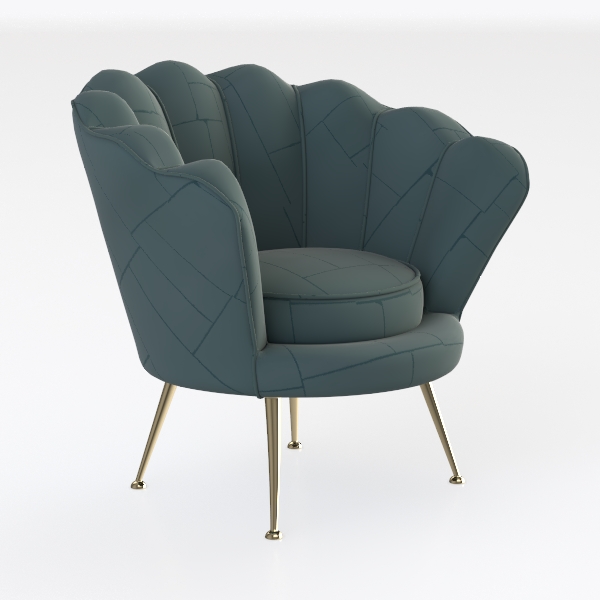 Inspired by petals unfurling, this armchair merges organic curves with modern charm. Light blue upholstery, with soft stone-like textures, feels smooth and inviting; gold metal legs add luxury. Ideal for modern minimalist or mid-century living rooms, it pairs well with neutral coffee tables and sheer curtains. Its wide, contoured seat ensures exceptional comfort, blending decor and practicality.