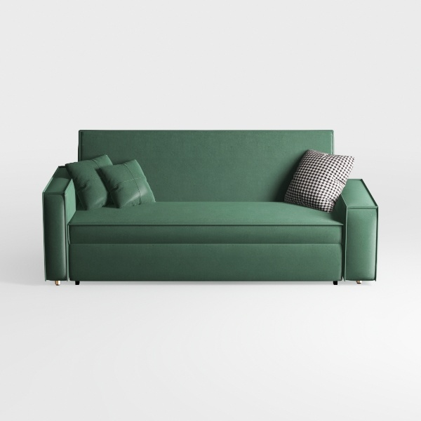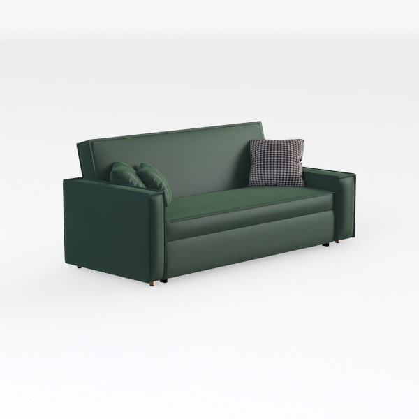 This sofa takes cues from nature’s balanced beauty, blending the tranquil depth of emerald green with sleek, contemporary lines to craft a piece that feels both timeless and fresh. Its design is rooted in simplicity—clean armrests, a streamlined back, and a soft, curved profile that invites relaxation—echoing the calm of a curated natural space.