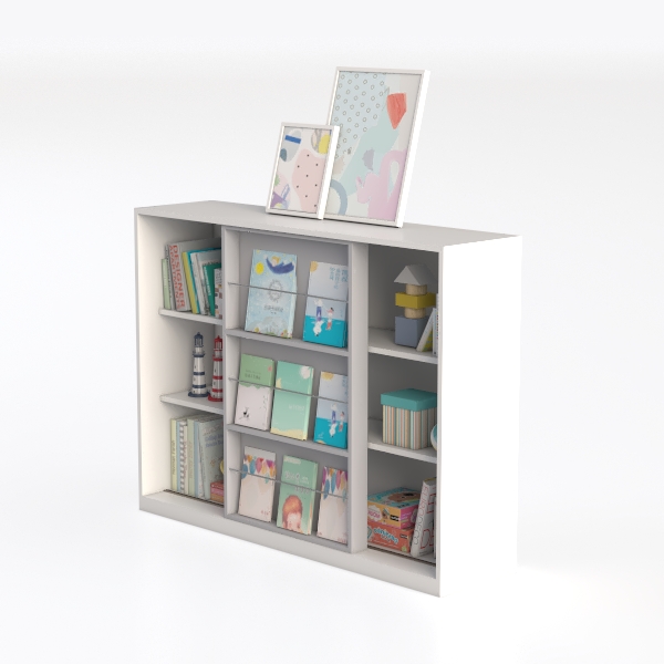Inspired by childhood wonder, blending playful elements like lighthouses and rainbows with clean lines. The smooth white surface feels cool to the touch, while soft pastels and vibrant accents create a warm, inviting vibe. Ideal for a cozy kids' room or family reading nook, pairing with pastel furniture and playful art. Generous compartments store books, toys, and decor, keeping spaces organized yet charming.