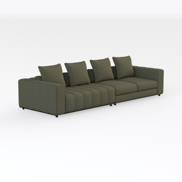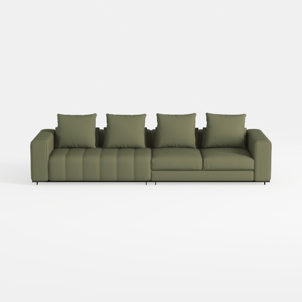 Design inspiration draws from the organic warmth of natural landscapes, reimagined through a minimalist design philosophy. The sofa’s soft olive-green hue, reminiscent of eucalyptus leaves, blends a sense of calm and earthy elegance with contemporary simplicity, making it a timeless centerpiece for modern spaces.