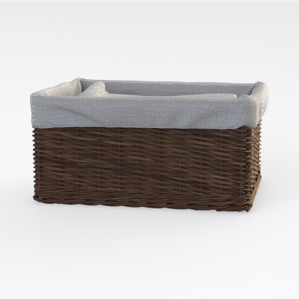 Crafted with a nod to natural craftsmanship, this storage piece draws inspiration from traditional wickerwork, merging rustic warmth with modern simplicity. The base showcases a rich, warm brown woven texture—each strand interlaced to form a sturdy yet organic pattern, its surface slightly rough to the touch, evoking the authenticity of handcrafted artisanal work. A soft, light gray linen cover tops the structure, its smooth, drapey fabric contrasting gently with the basket’s rigid weave, adding a layer of softness and visual balance. Together, the earthy tones and textural contrast create a calm, inviting presence, perfect for grounding a space.