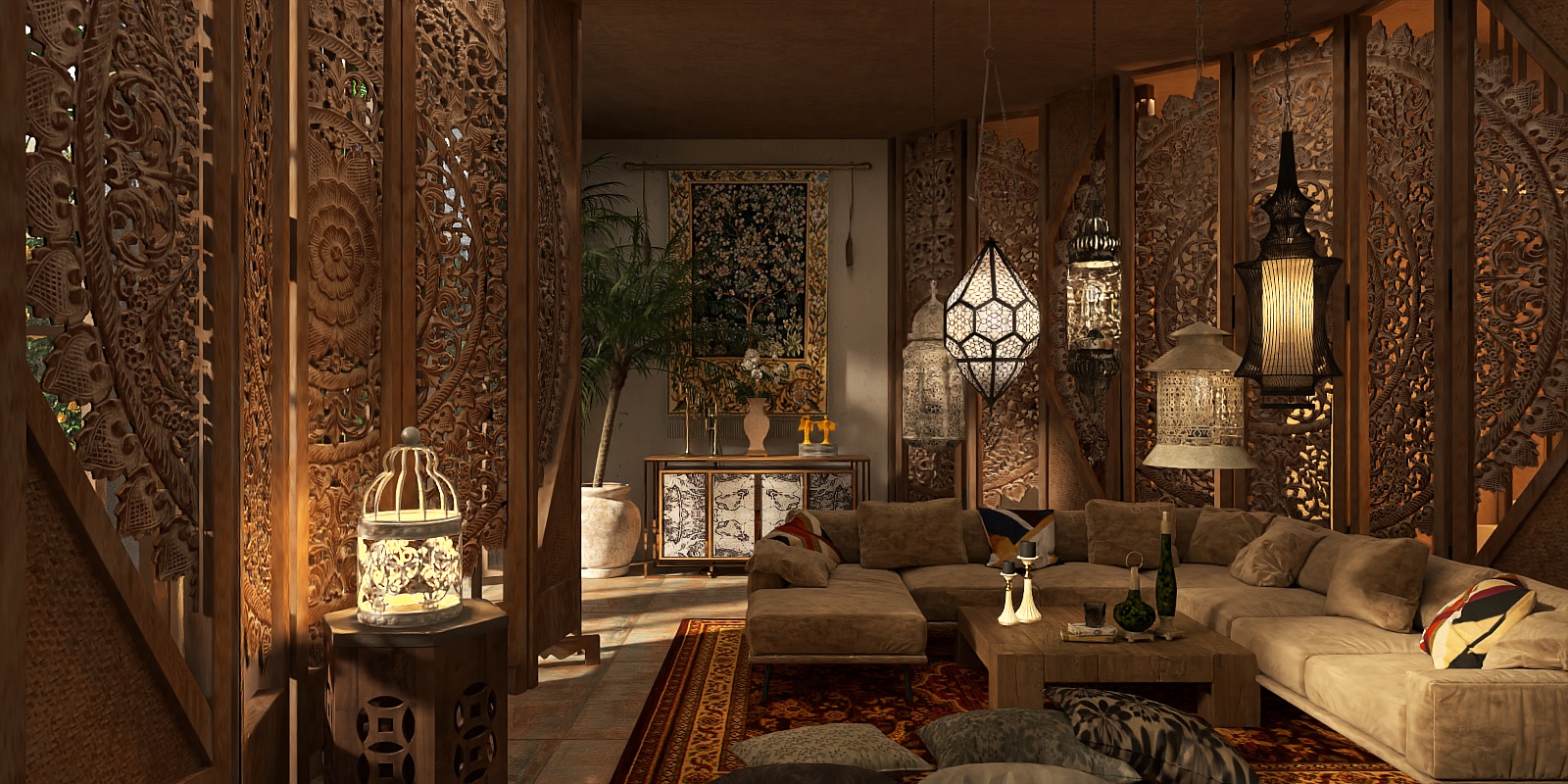HomVent 4-Door Hollow Carved Accent Cabinet
