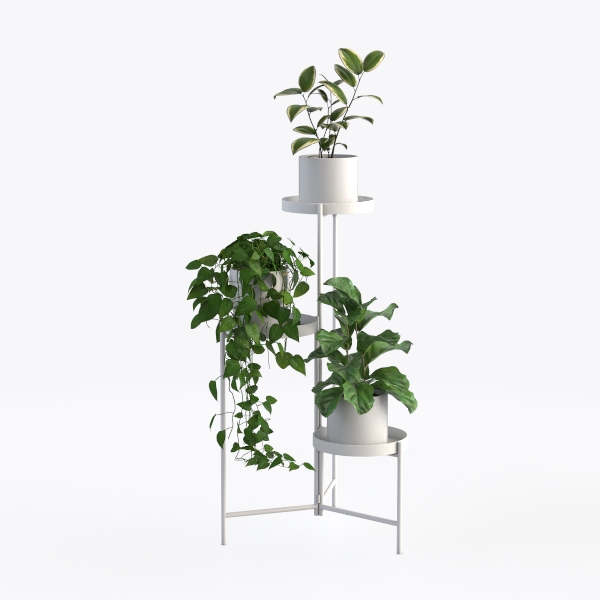 Inspired by nature’s vertical layering, this home piece merges sleek matte metal with smooth ceramic planters, hosting trailing vines and lush greenery. Its light, airy frame complements modern minimalism or Scandinavian styles, ideal for living rooms, balconies, or studies, pairing beautifully with wooden furniture and soft walls. The multi-tiered design saves floor space, showcasing plants at varying heights for a vibrant, living corner.