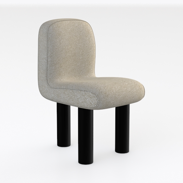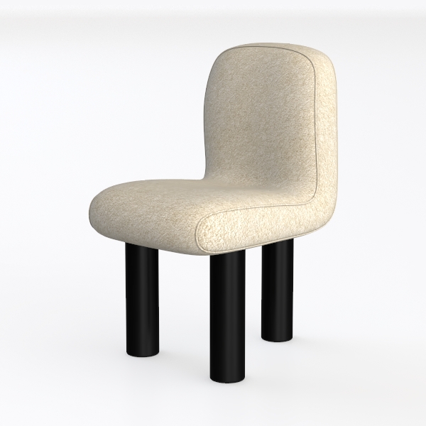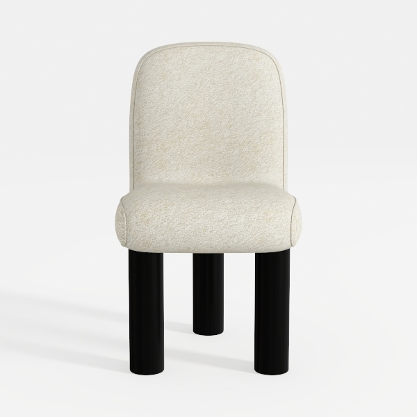 Inspired by Scandinavian minimalism, this chair features soft, bouclé beige upholstery for a warm tactile feel, paired with sleek matte black legs for a modern contrast. Its plump seat depth ensures comfort, ideal for a minimalist dining room or Scandinavian living space, complementing wooden or marble surfaces.