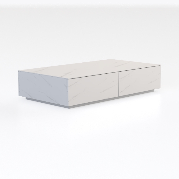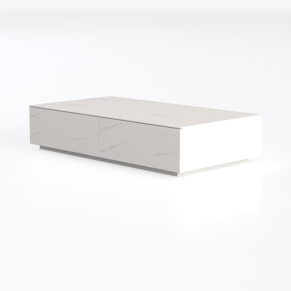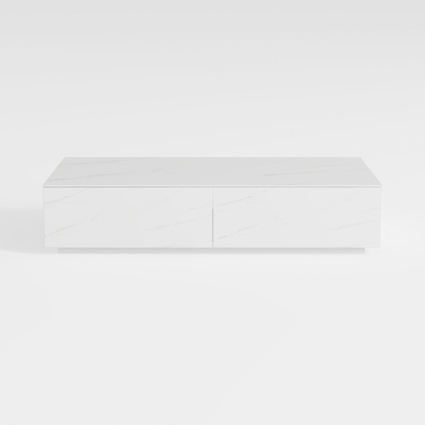 Designed to blend the natural veining of marble with minimalist aesthetics, this piece features a sleek, mirror-like surface. Delicate marble patterns add subtle sophistication, while the crisp white hue brightens the space. Perfect for modern or Scandinavian living rooms, it pairs with metal side tables and streamlined sofas. Double drawers offer practical storage, enhancing both functionality and style.