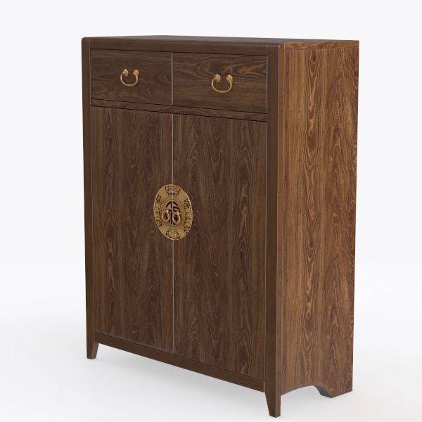 Drawing inspiration from traditional Chinese furniture, it blends classic symmetry with subtle modernity. Rich warm brown wood grain offers a tactile, grounded feel; gold accents add elegance, highlighting craftsmanship. This piece shines in living rooms or entryways, pairing beautifully with minimalist greenery, ink-wash art or warm lighting. Spacious double doors and a top drawer provide ample storage, balancing style and practicality.
