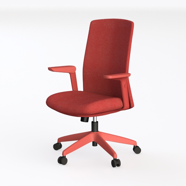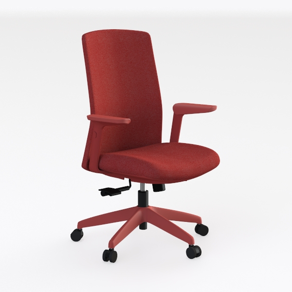 Designed with ergonomic principles, this chair features a textured fabric seat that feels soft yet supportive. Its vibrant red hue adds a bold touch, complemented by clean lines for a modern look. Ideal for a home office or minimalist workspace, pair it with wooden desks and metal accents. The height-adjustable mechanism and smooth-rolling casters ensure comfort and mobility during long work hours.