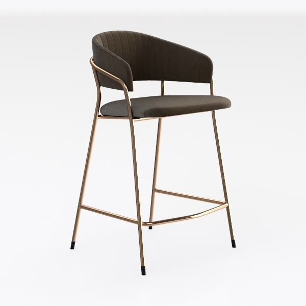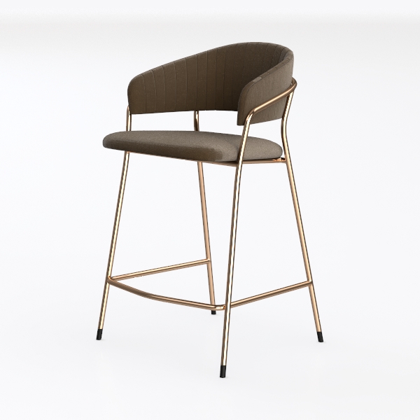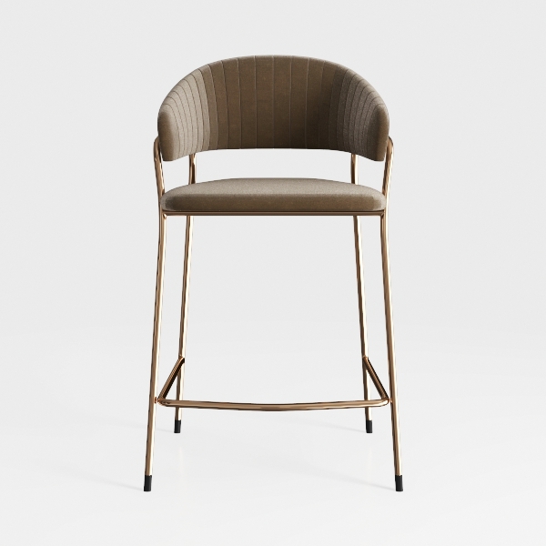 Inspired by organic curves, like a smooth seashell, this bar stool blends softness with structural elegance. Its velvety upholstery offers a gentle touch, while the gold-hued metal frame adds warm luster, balancing comfort and sophistication. Ideal for modern minimalist or mid-century modern kitchens, pairing beautifully with marble countertops and matte black lighting. A high, curved backrest supports the upper body, and sturdy metal legs ensure stability, perfect for casual meals or evening gatherings.