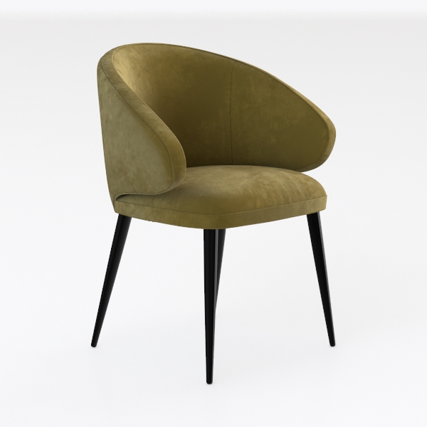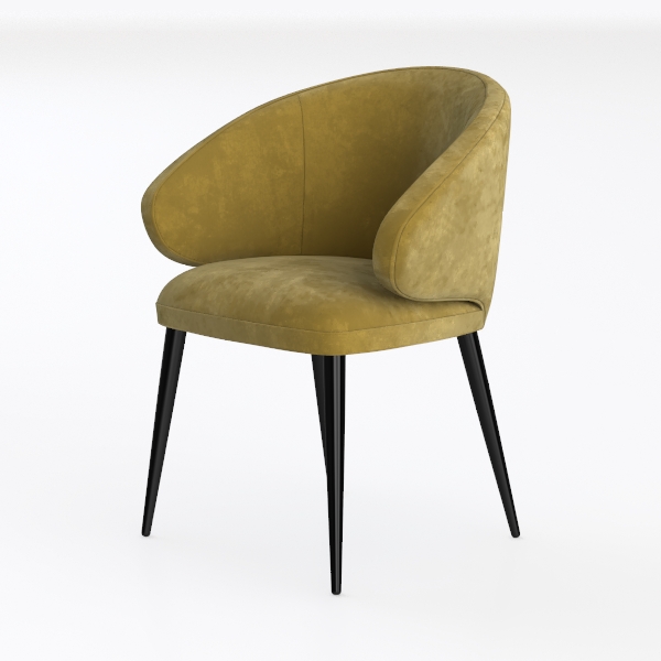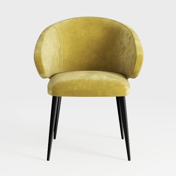 Inspired by natural organic curves, this chair blends warmth and elegance. Its soft, buttery velvet in warm mustard offers tactile delight, with sleek, minimalist silhouette and contrasting black legs for modern flair. Ideal for modern minimalist living rooms or dining areas, pairs beautifully with marble side tables and metallic accents. Plush seat ensures exceptional comfort; ergonomic design supports relaxed, all-day seating.