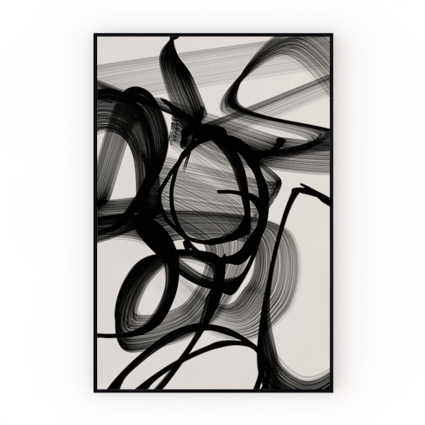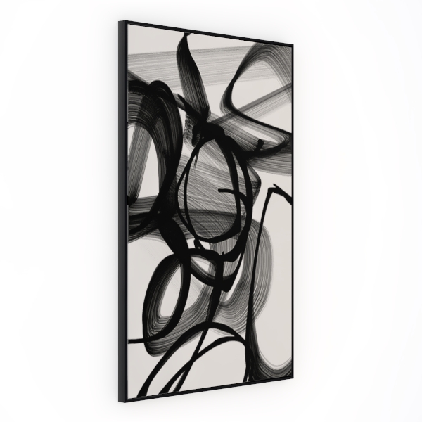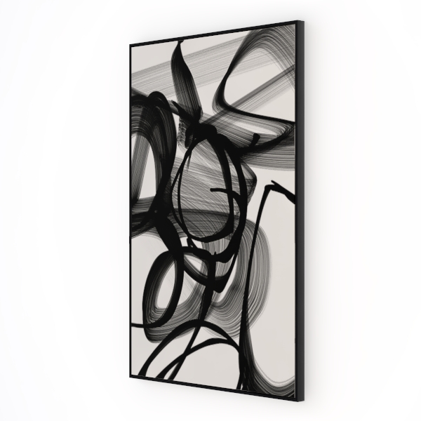 Sofoney - Black Framed Black and White Abstract Canvas Wall Art with Hand Painted Texture, Large Black Brushstrokes Oil Painting Vertical Wall Decor for Living Room Bedroom - 40"x20"
