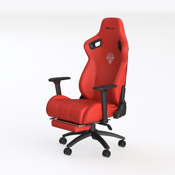 Inspired by racing seats for optimal support, this gaming chair features a sleek red upholstery with smooth, breathable texture, showcasing a vibrant red hue. Perfect for gaming setups or home offices, blending sporty edge with modern minimalism. Wider backrest and contoured seat offer superior lumbar support, while adjustable armrests and reclining mechanism ensure all-day comfort during long sessions.