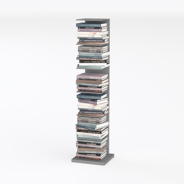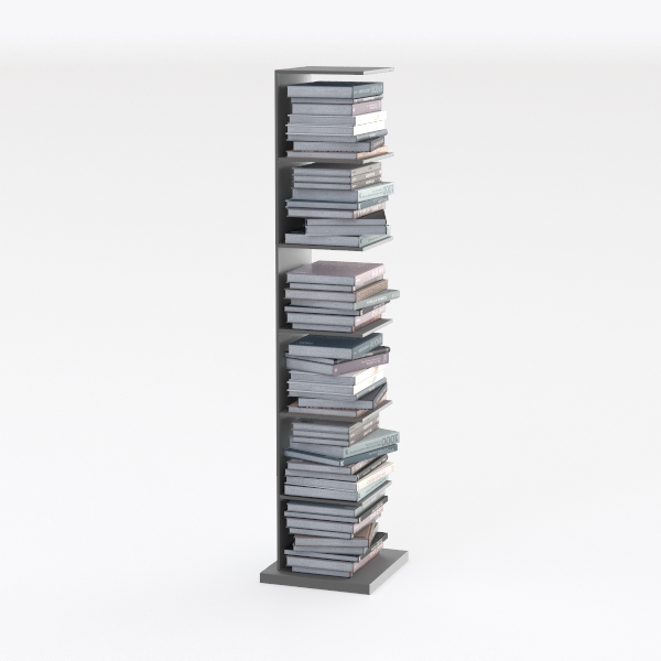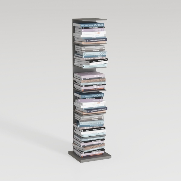 Designed with minimalist principles, this vertical bookshelf blends functionality and style. Its sleek, matte surface and clean lines create a sense of order, while stacked books in soft blue, gray, and lavender hues add warmth. Ideal for modern, Scandinavian, or contemporary spaces, it pairs well with neutral furniture. The stable tiers maximize space, holding many books neatly, balancing practicality and beauty.
