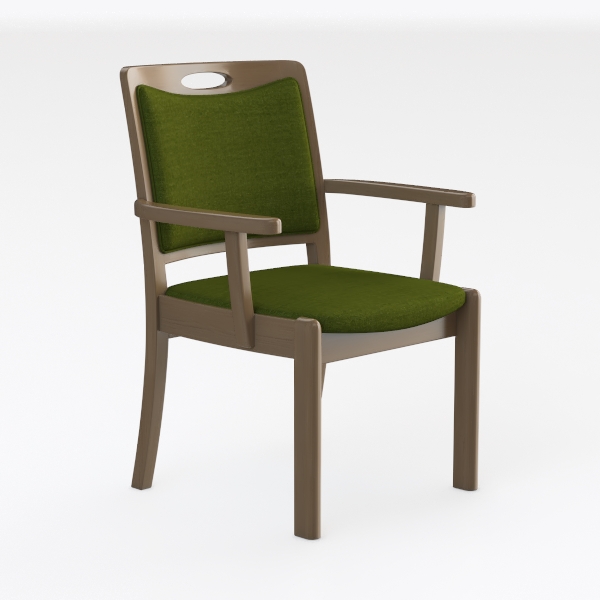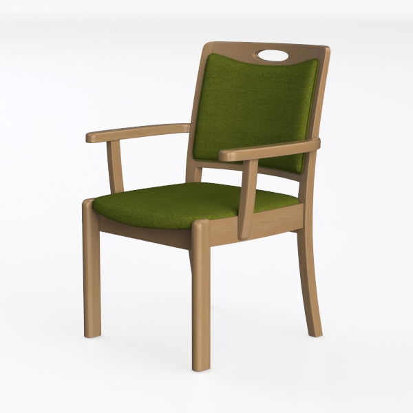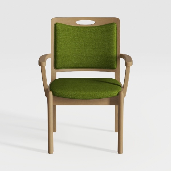 Inspired by Scandinavian minimalism, this chair features a smooth oak frame and soft textured green upholstery. Clean lines and organic curves create a warm, inviting visual. Ideal for a mid-century modern living room or minimalist dining space, pair it with marble side tables and linen curtains. Ergonomic armrests and a plush seat cushion ensure all-day comfort.