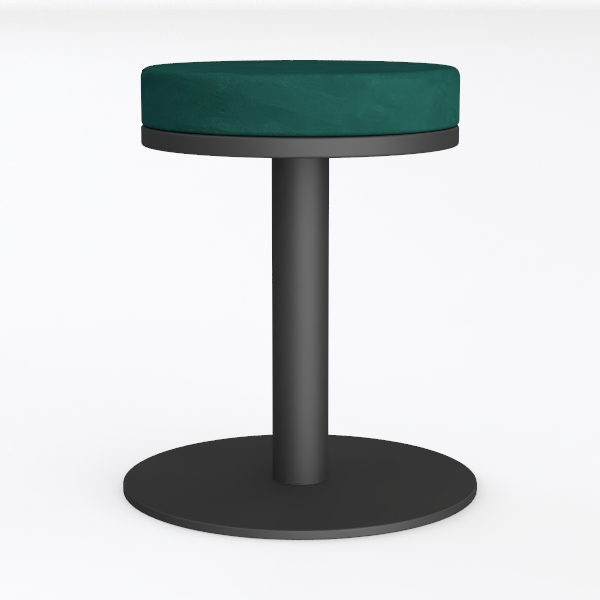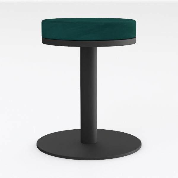Inspired by mid-century modern minimalism, this round stool blends soft curves with industrial simplicity. A rich emerald green velvet seat, soft-textured, contrasts with a matte black metal base, sleek and sophisticated. Ideal for a modern living room or kitchen bar, it pairs with marble side tables and brass accents, adding luxury to minimalist spaces. The wide, plush seat offers all-day comfort, with a sturdy base ensuring daily stability.