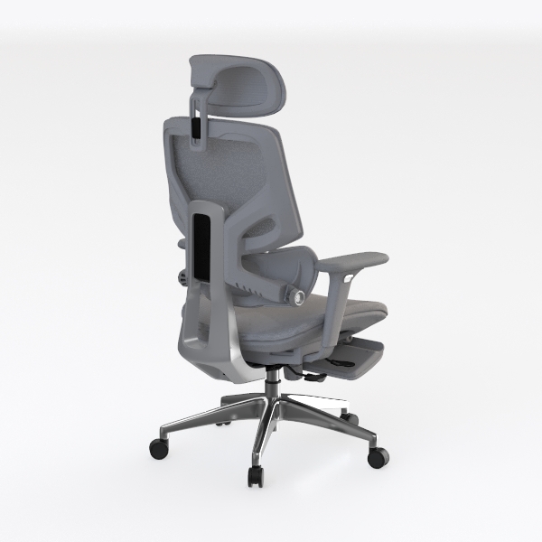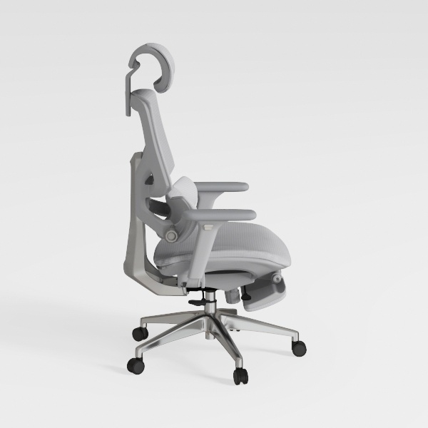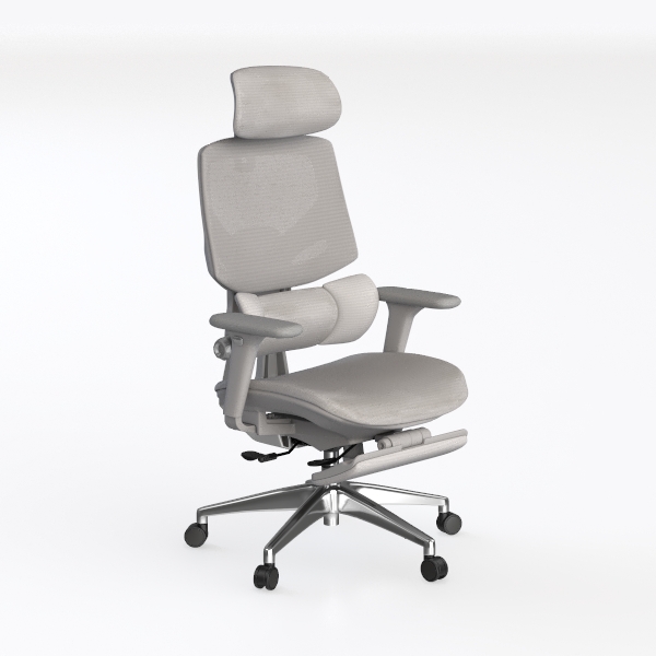Designed with ergonomic precision to blend style and support, this piece takes cues from modern minimalism. The breathable mesh back and soft upholstered seat offer a lightweight, airy look, while the matte metal base adds subtle industrial elegance. Perfect for a home workspace or contemporary study, it pairs seamlessly with sleek desks and warm wooden accents. Adjustable headrest, armrests, and a reclining back with a retractable footrest ensure customizable all-day comfort for long work hours.