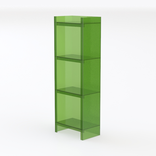 Inspired by nature’s vivid greenery, this slim bookshelf blends modern minimalism with organic charm. Its translucent emerald hue shimmers softly, offering a light, airy feel—glass-like clarity that adds a fresh, lively touch without overwhelming. Ideal for compact living rooms or home offices, it pairs beautifully with neutral furniture and wooden accents. Three spacious shelves store books and decor, while its lightweight design keeps the room open and uncluttered.