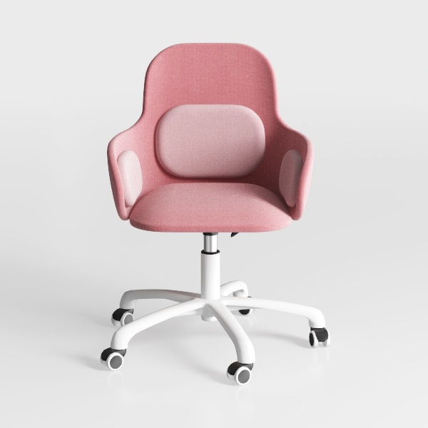 Drawing inspiration from natural fluidity and user-centric design, this chair features soft, velvety pink upholstery that feels plush and supportive. Its sleek white frame and swivel base add a crisp, contemporary touch, while smooth-rolling casters ensure easy movement. Ideal for home offices or study nooks, it complements modern, Scandinavian, or pastel-themed decors, with adjustable height for all-day comfort.