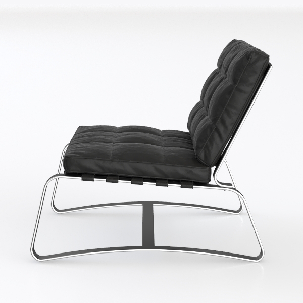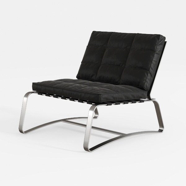 Clean, uncluttered lines define the structure: the backrest, angled to cradle the spine, and the wide, flat seat merge seamlessly, while the metal legs—sleek, chrome-plated, and curved in a graceful arc—lift the piece, giving it an airy, weightless quality that opens up the surrounding space.