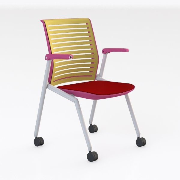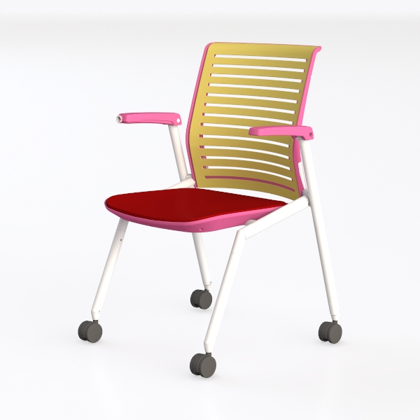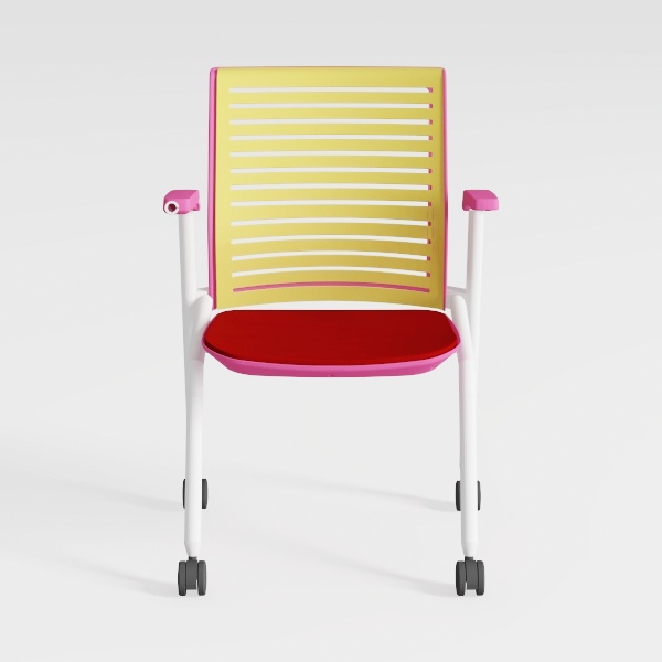 Designed to blend vibrant energy with minimalist practicality, this chair draws from bold color contrasts and clean lines. Its yellow slatted back feels light and breathable, while the soft red seat offers plush comfort—all set against crisp white legs and pink armrests, creating a bright, airy vibe. Perfect for a playful home office or modern living space, it pairs with marble accents and potted plants. Smooth-rolling wheels ensure easy mobility, with sturdy construction for long sitting.