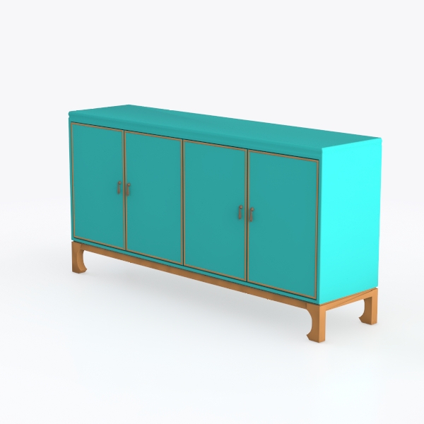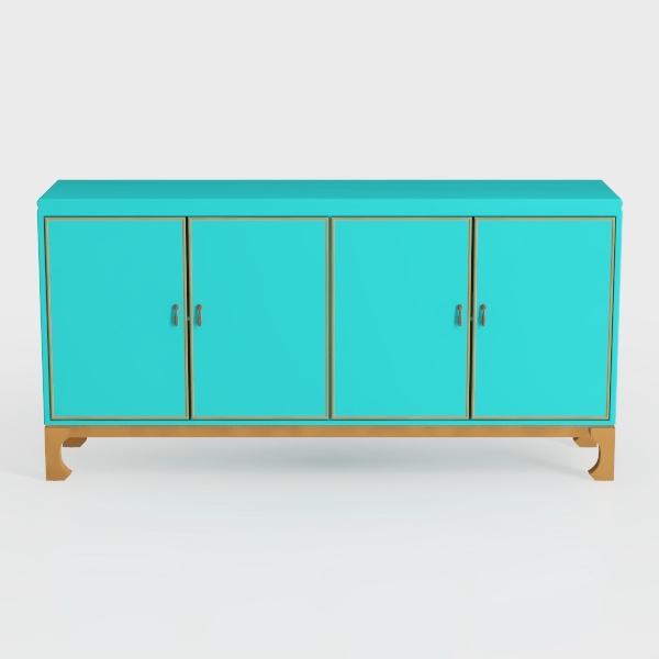 Inspired by mid-century modern design, this cabinet merges retro warmth with modern simplicity. Smooth turquoise surface and gold-trimmed doors/legs offer a fresh, sophisticated feel. Ideal for a modern minimalist living room, pair with marble accents and greenery to boost its elegant vibe. Four doors provide organized storage, while slim elevated legs allow easy cleaning—blending style and practicality effortlessly.