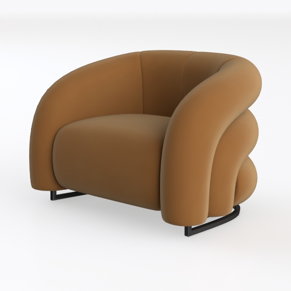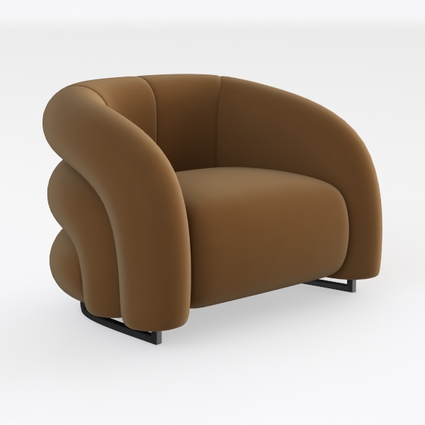 Inspired by the soft, undulating forms of natural landscapes, this armchair embodies a harmonious blend of organic design and modern minimalism. Its warm terracotta upholstery, with a plush, velvety texture, feels both tactile and substantial—light-catching in soft light, it wraps the eye in a comforting, earthy glow. The gently curved arms and rounded backrest flow seamlessly, creating a silhouette that balances intimacy with openness, making it feel both cozy and expansive.