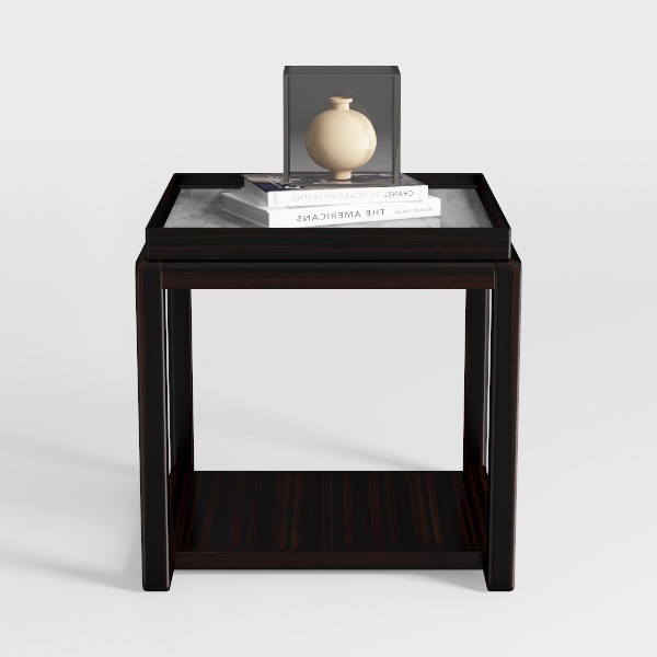 Inspired by the blend of natural materials, this side table features a smooth marble top contrasting with rich, dark wood grain. Its sleek, clean lines create a modern, minimalist vibe, ideal for a living room paired with metal or glass decor. The lower shelf adds practical storage, balancing style and functionality seamlessly.