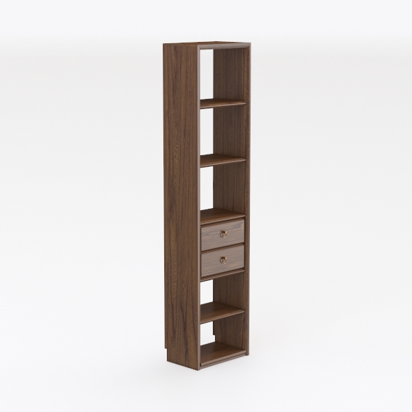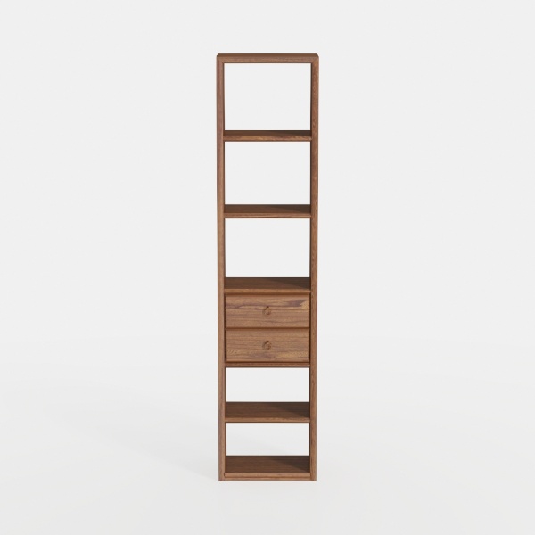 Inspired by natural wood grain and minimalist design, this slim wooden shelf blends warmth with functionality. Its smooth, deep brown surface and clean lines create a serene, uncluttered look. Perfect for modern, Scandinavian-style living rooms or studies, pair it with potted plants and soft lighting. Multiple open shelves display books and decor, while the middle drawer offers hidden storage, balancing style and practicality.