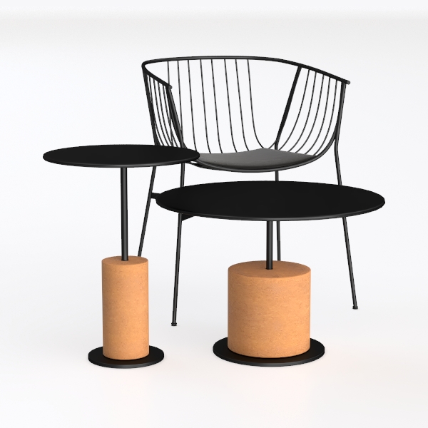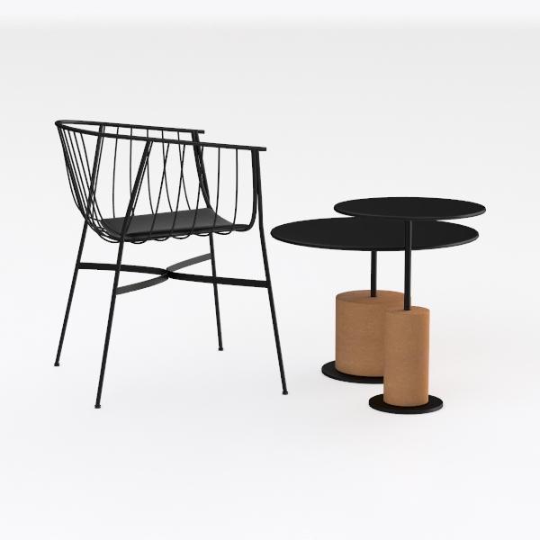 Crafted with geometric precision and organic warmth, this piece blends sleek matte black metal—light, airy lines—with smooth black tabletops and soft, warm cork bases, their textures contrasting beautifully. Ideal for modern minimalist living rooms or studies, pairing with neutral sofas and greenery for a serene, sophisticated feel. The lightweight metal frame allows easy movement, while the stable cork bases offer steady surfaces for daily items or decor.