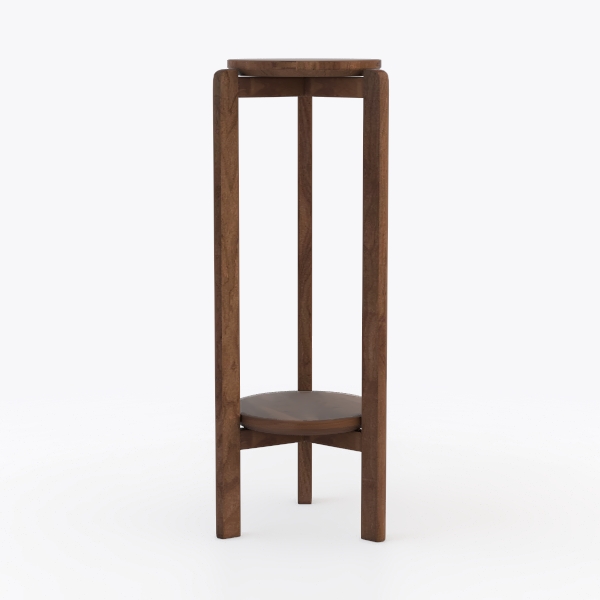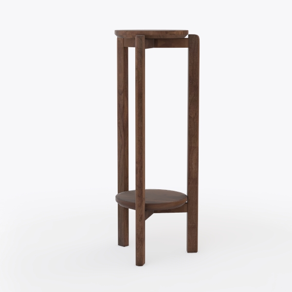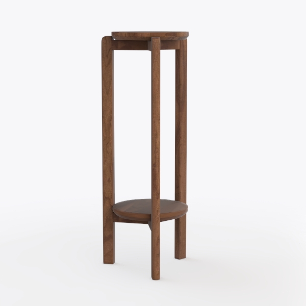 Inspired by Scandinavian minimalism, this elegant wooden stand features a warm, smooth texture and rich brown hue. Its clean lines and two-tiered design add lightness to spaces, ideal for a modern living room or reading corner. The elevated base ensures easy cleaning, while the sturdy structure holds potted plants or small decor.