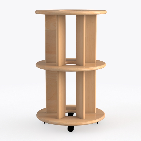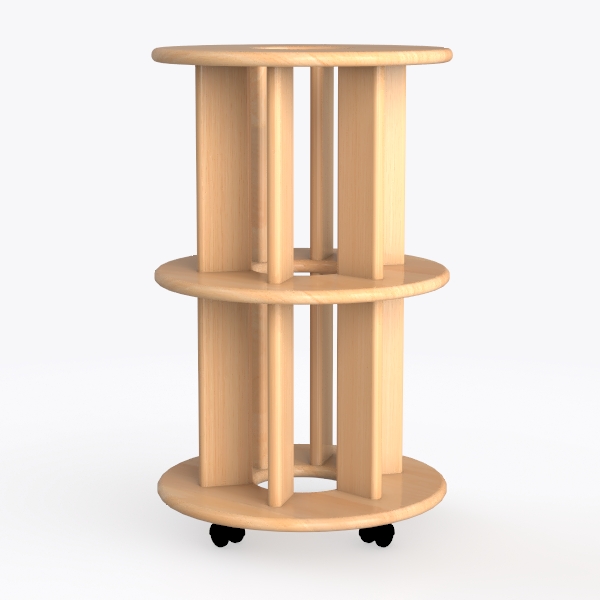 Inspired by organic minimalism, this circular side table features a smooth, light wood finish with visible grain, creating a warm, airy look. Perfect for modern minimalist living rooms or study corners, complementing neutral tones and soft textiles. Equipped with smooth-rolling casters, it offers easy mobility, while the three circular tiers provide practical storage for books, plants, or decor.