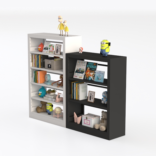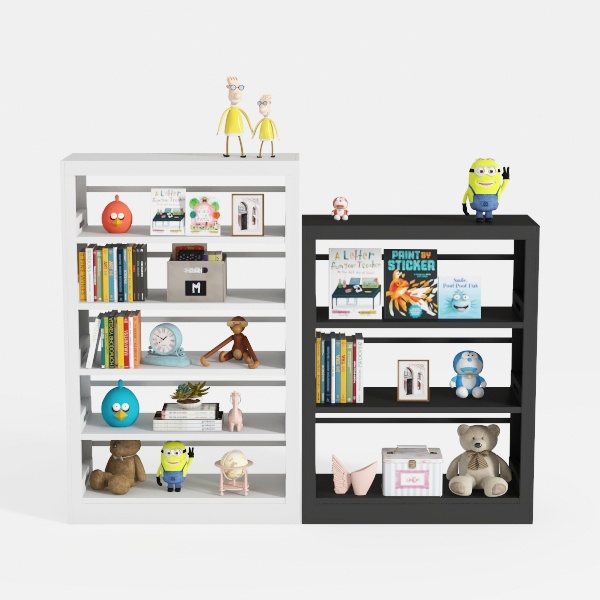 Designed to blend warmth and playfulness, these bookcases feature sleek lines and a striking black-white contrast. Their smooth surfaces and layered shelves showcase books, plush toys, and decorative items, creating a cozy, organized vibe. Ideal for children’s rooms or home studies, they fit modern minimalism, offering ample storage for reading materials and cherished toys.