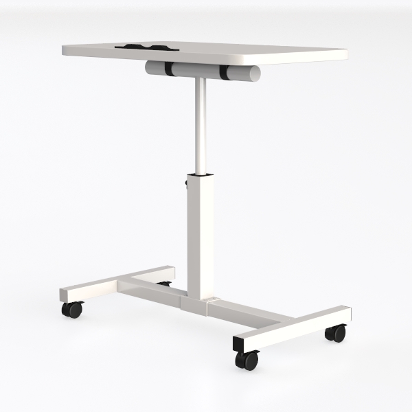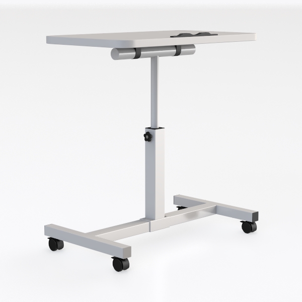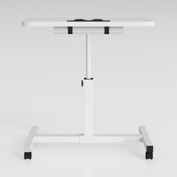 Inspired by modern flexible living, this mobile desk features a smooth white top and cool metal frame, exuding minimalist elegance. Its clean lines and light build blend seamlessly into modern bedrooms or studies, pairing well with soft lighting and wooden decor. With adjustable height and swivel wheels, it offers easy mobility, perfect for work, reading, or bedside use.