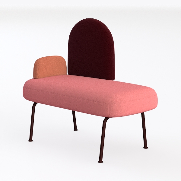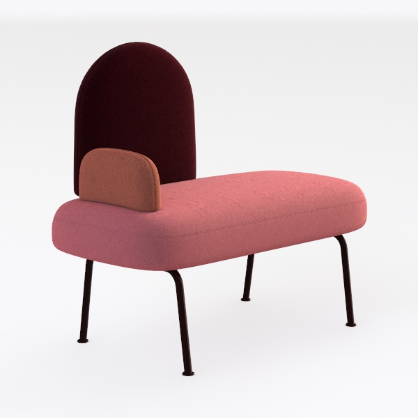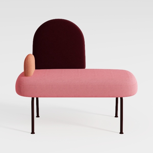 This elegant piece draws inspiration from organic, flowing forms, evoking the soft curves of a cloud or the smooth contours of polished stones. Its design balances modern simplicity with warm, inviting charm, making it a versatile addition to any space. The seat is upholstered in a soft, textured pink fabric that feels surprisingly plush to the touch, while the deep burgundy backrest adds a rich, sophisticated contrast—structured yet supple, it complements the gentle silhouette. A small, terracotta accent pillow rests casually on the edge, its plump shape offering both style and practical support for the neck.