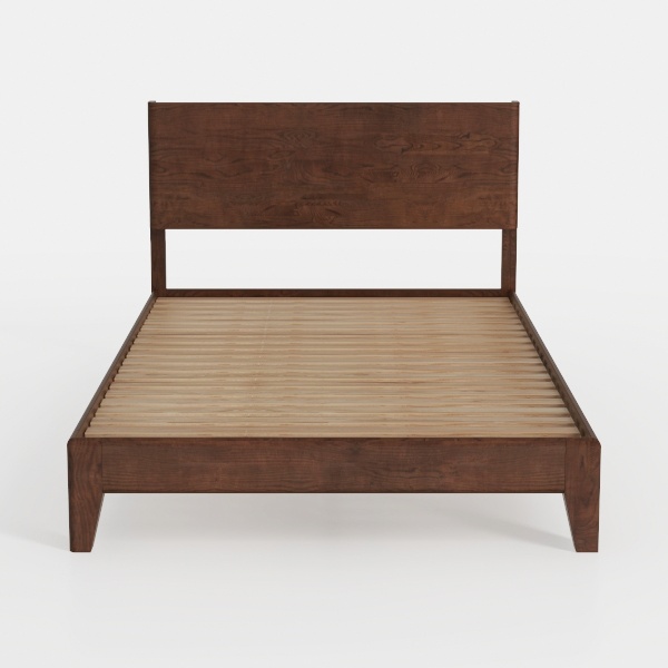 Inspired by natural wood grain and Scandinavian simplicity, this bed frame blends organic warmth with clean lines. Its rich brown finish highlights the wood’s unique grain, offering a smooth, tactile surface that invites relaxation. Perfect for a cozy, minimalist bedroom, it pairs beautifully with soft textiles and neutral decor. A sturdy slat base provides excellent support, while the low-profile design maximizes space in smaller rooms.