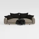 Embrace the elegance of contemporary interior design with this stunning sofa, inspired by minimalist aesthetics. The soft, muted beige fabric invites you to sink in and relax, while the velvety texture adds a touch of luxury that is both inviting and cozy. The contrasting black decorative pillows and blanket enhance the visual appeal, bringing a striking yet harmonious balance to your living space.