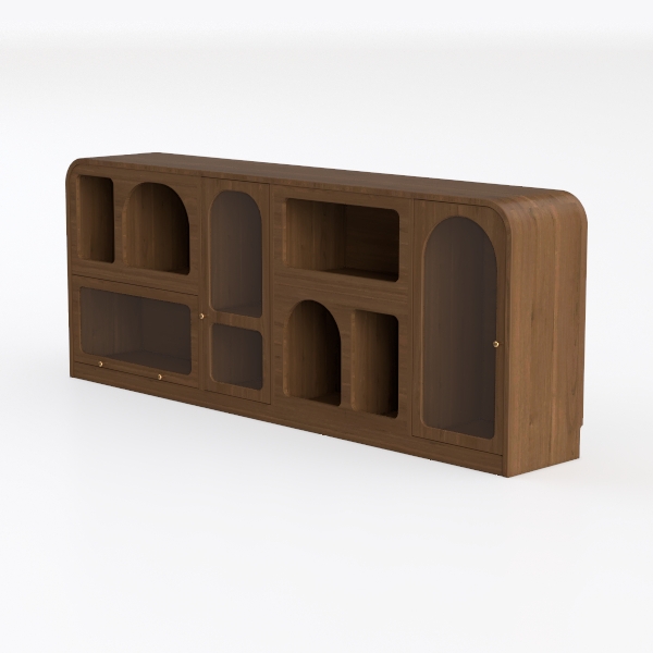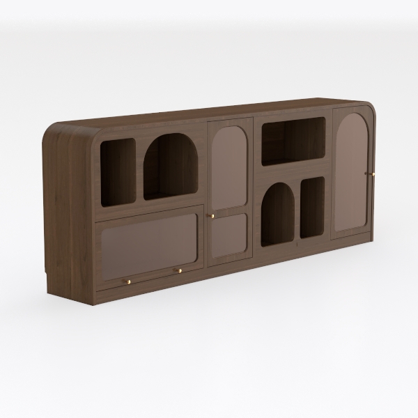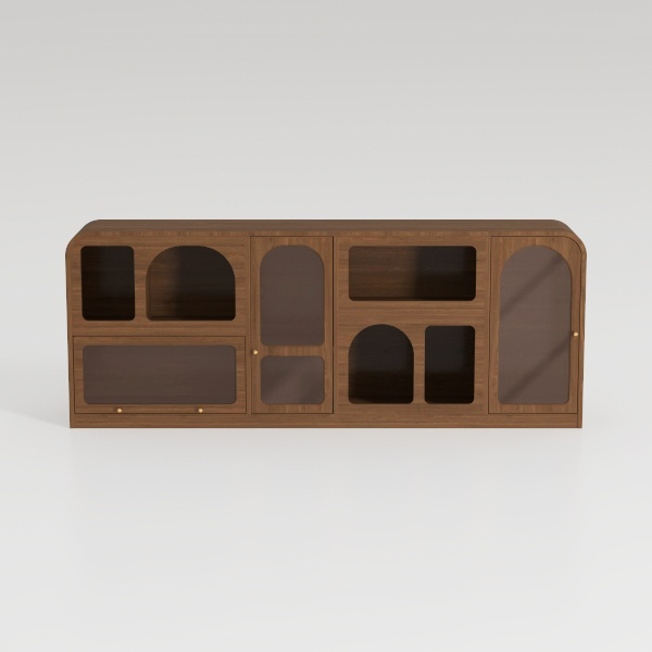 Buffet Cabinet Sideboard, 63.1" Fluted Accent Storage Cabinet with 4 Doors and Shelves, Credenza Cupboard Console for Living Room Kitchen Hallway, Walnut