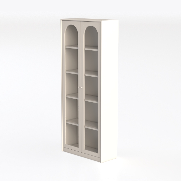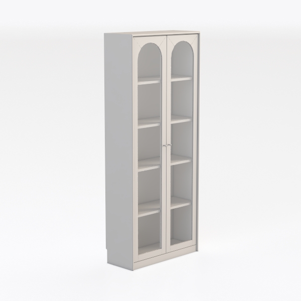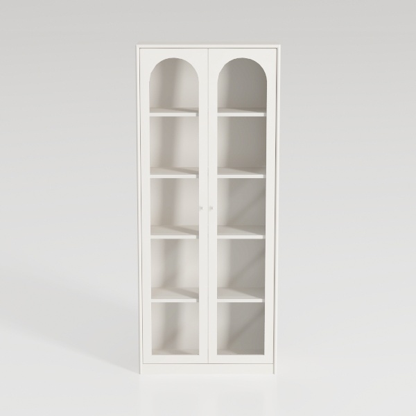 Inspired by mid-century architectural details, blending soft curves and clean lines for timeless charm. Sleek matte white finish with transparent glass doors creates a bright, airy feel, smooth surfaces inviting gentle touch. Ideal for minimalist or Scandinavian living rooms, pairing beautifully with light wood floors and potted greenery. Spacious open shelves behind glass doors offer ample display space, balancing aesthetics and practicality.
