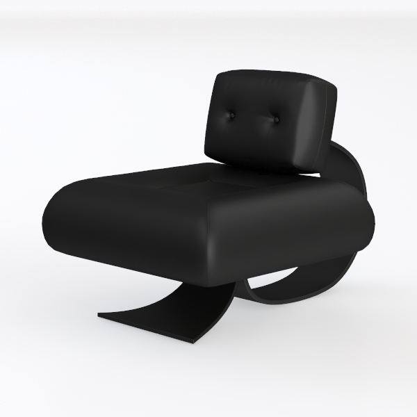 Visually, the chair makes a striking statement with its deep, matte black upholstery that catches light softly, revealing a rich, velvety texture under touch. The seat and backrest are seamlessly curved, creating a sense of fluidity, while the compact, padded headrest adds subtle comfort without disrupting the sleek silhouette. Supported by a broad, pedestal-inspired base, it feels both grounded and weightless, floating gently above the floor.