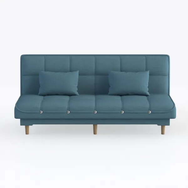 Inspired by Scandinavian design principles, it draws from the region’s reverence for uncluttered, functional spaces while incorporating delicate detailing that nods to mid-century charm. The soft blue upholstery, a textured linen blend, feels inviting to the touch—light yet substantial, with a gentle weave that adds depth without overwhelming. Structured tufting, adorned with small, polished brass buttons, creates a rhythmic pattern across the back and seat, balancing visual interest with a tactile allure. The sofa sits on tapered light oak legs, their warm tone complementing the blue fabric and giving the piece an airy, grounded presence.