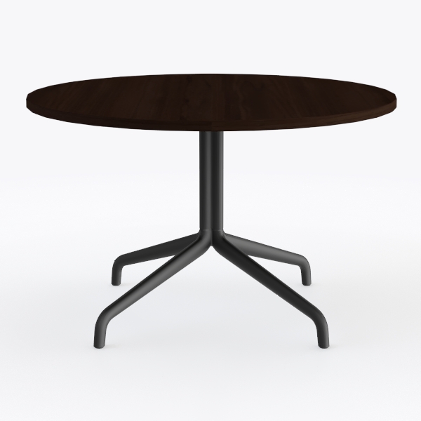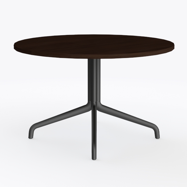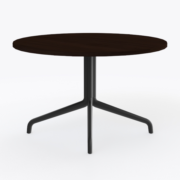 Designed with organic minimalism, this round table merges natural warmth and industrial edge. The dark wood top has a smooth, polished surface with subtle grain, while the matte black metal base—sleek, angled legs—adds modern flair. Clean lines and balanced proportions create a calm, sophisticated look. Perfect for modern living or Scandinavian spaces, pairing with light sofas and geometric decor. Spacious circular top offers room for drinks, books, or decor; sturdy base ensures stability.