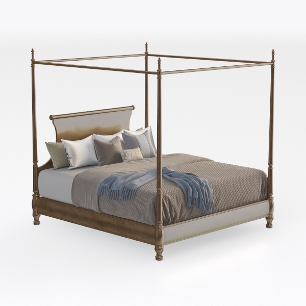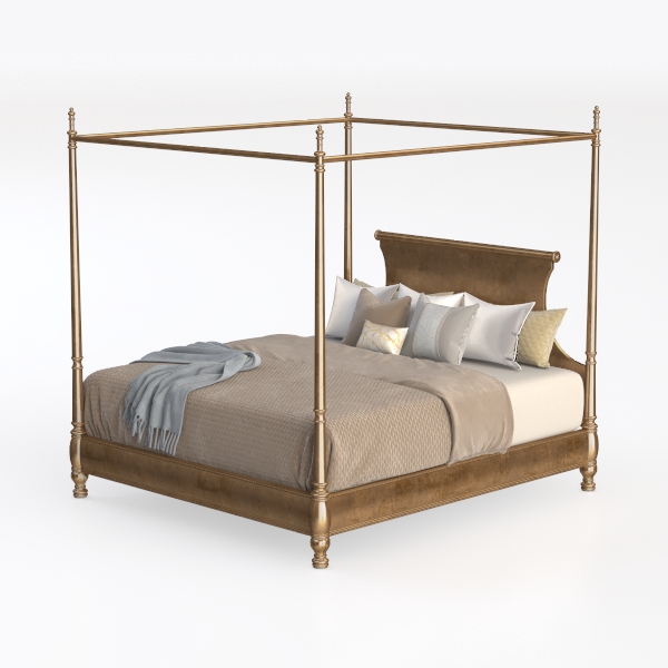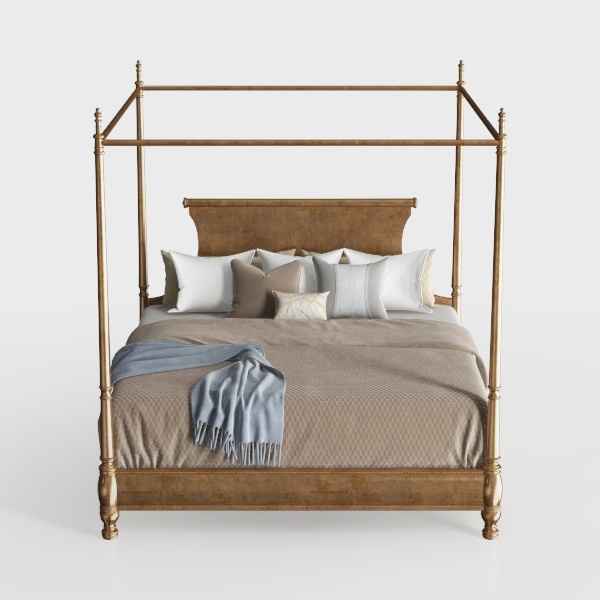 Inspired by timeless classic four-poster designs, this bed blends elegance and practicality. Its golden wooden frame features subtle textures, while the warm brown headboard, with soft leather-like touch, and layered bedding create a cozy visual. Ideal for a sophisticated, vintage-inspired bedroom, pairing beautifully with marble nightstands and velvet drapes. The spacious design and sturdy structure offer excellent support, ensuring restful, peaceful nights.