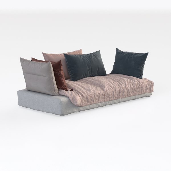 Designed to blend comfort and modern simplicity, this piece draws inspiration from serene, minimalist living. Soft, textured fabric covers the frame, with plush cushions in warm tones—velvety blues, muted terracottas, and soft pinks—adding depth and coziness. Perfect for a minimalist or Scandinavian-inspired living room, it pairs with wooden coffee tables and sleek floor lamps. Generous seat depth ensures ultimate relaxation, ideal for unwinding.
