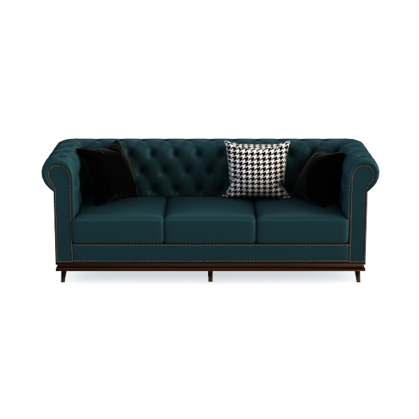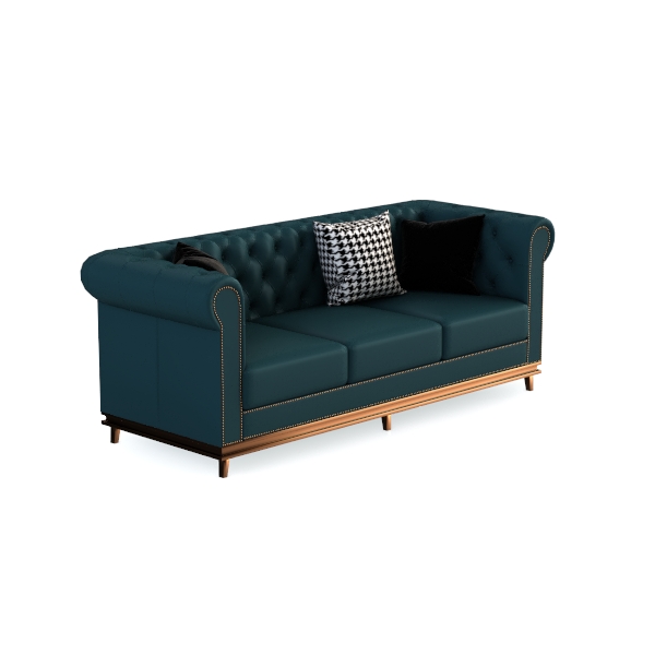 This sofa embodies a seamless fusion of classic charm and modern grace, drawing inspiration from the timeless Chesterfield design ethos. Its silhouette revives the iconic button-tufted backrest and gently rolled arms, reimagined with contemporary minimalism—sleek gold nailhead trim traces the edges, adding refined detail without overshadowing the piece’s elegant simplicity.