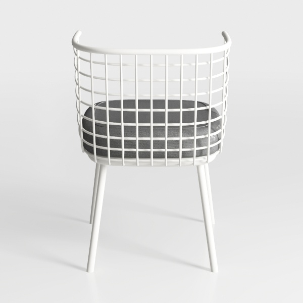 Inspired by Scandinavian minimalism, it merges geometric precision with organic softness. The white metal frame, sleek and grid-structured, feels light yet sturdy; the plush gray cushion adds warm tactile contrast, balancing visual rhythm. Ideal for modern living rooms or studies, it pairs with marble side tables and greenery, enhancing a clean, sophisticated vibe. Ergonomic design ensures comfort—supportive frame and a seat that invites relaxation, making it both functional and a design focal point.