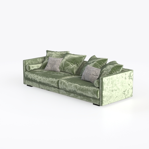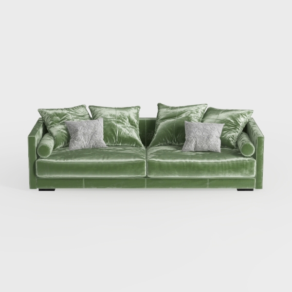 Drawing inspiration from the soft, earthy tones of botanical gardens, this sofa blends modern minimalism with organic warmth. Crafted in a muted sage green velvet, its fabric feels like a gentle embrace—soft yet substantial, with a subtle sheen that shifts beautifully under different lighting, adding depth to the design. The clean, straight lines of the frame, paired with slightly rounded armrests, balance softness with structural simplicity, while the low-profile silhouette keeps the piece feeling open and airy.