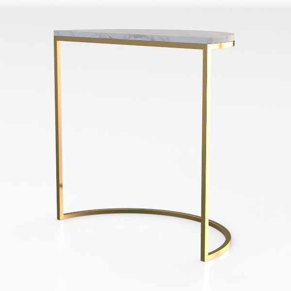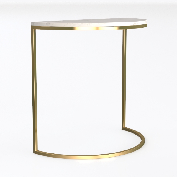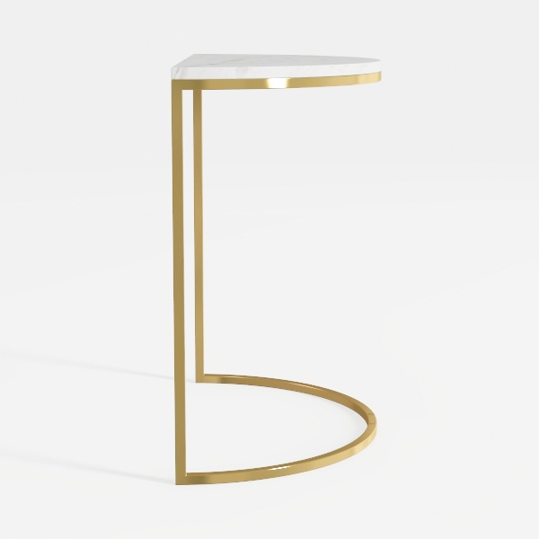 Designed with geometric precision, blending sharp angles and soft curves. The smooth white marble top offers a cool, polished feel, while the gold metal frame adds a warm, luminous glow. Ideal for a contemporary living room or bedroom, pairing beautifully with sleek sofas and metallic decor, its triangular surface holds small items, and the curved base ensures stability without overwhelming space.