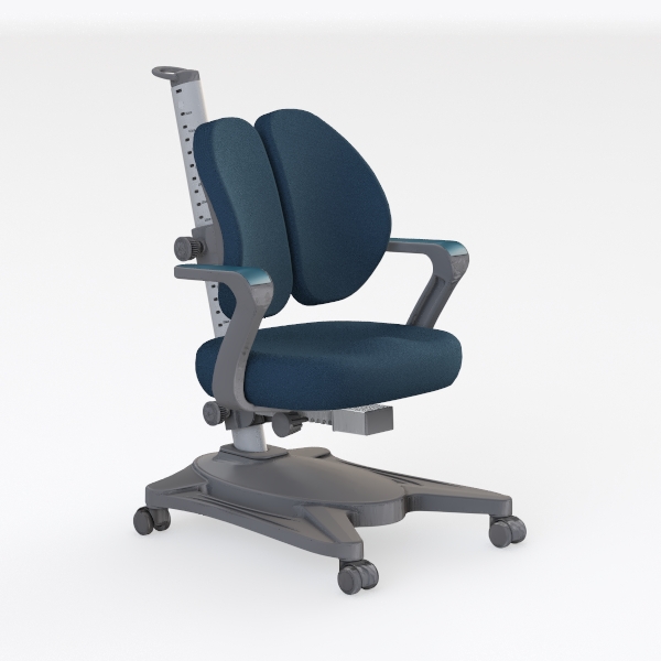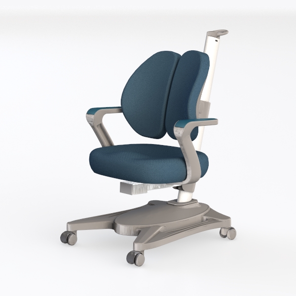 Inspired by ergonomic science and minimalist design, this chair merges comfort and sleek functionality. Soft blue upholstery feels cozy, while matte silver metal adds a modern, industrial touch. Dual-curved backrest and smooth lines create a balanced visual, perfect for a contemporary home office or study with wooden desks and potted plants. Wide seat depth and adjustable height ensure all-day comfort, with smooth-rolling casters for easy movement.
