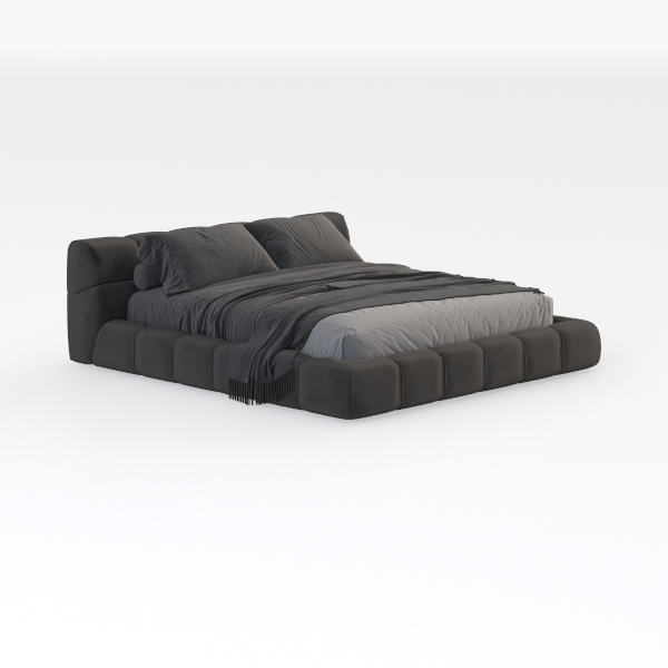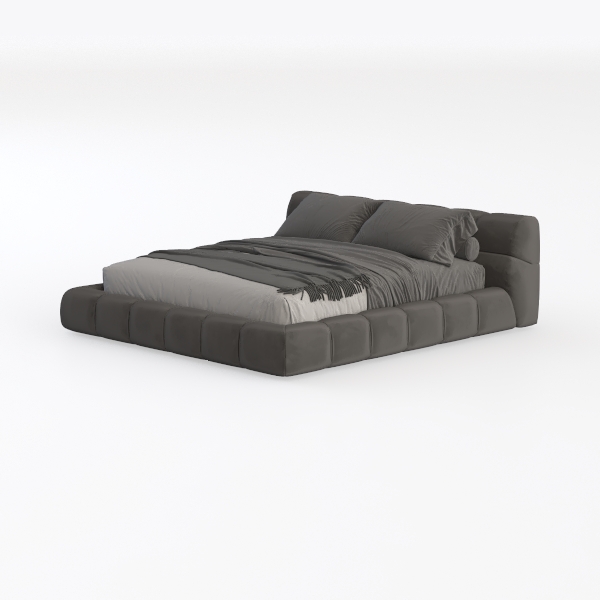 Inspired by the blend of modern elegance and cozy relaxation, this piece merges clean lines with soft, plush texture. The deep gray upholstery, with its subtle sheen, catches light gently, enhancing the room’s warmth. Perfect for a minimalist or Scandinavian-style bedroom, it pairs beautifully with wooden furniture and soft, neutral-toned decor. A generous headboard provides excellent back support, while the low, sturdy frame ensures stability and under-bed storage space.