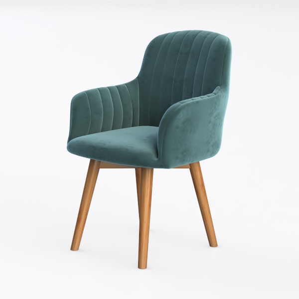 Inspired by organic seashell curves, this chair features soft velvet upholstery with subtle channel tufting, offering a tactile and visual texture. Warm oak legs add natural contrast, making it ideal for modern living rooms or dining nooks, complementing minimalist/Scandinavian styles with marble or wooden side tables. Plump cushions and curved armrests ensure optimal comfort, while slim legs keep the piece light and airy.